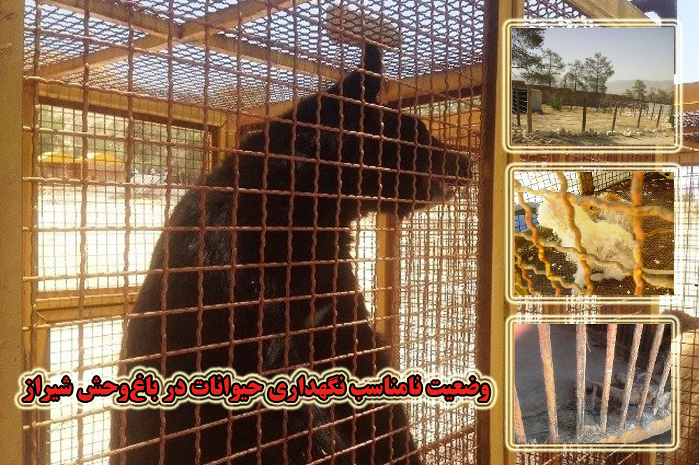 به گزارش حکیم مهر به نقل از مهر، نگهداری خرس در قفسهای کوچک، غذا دادن حیوانات با نان خشک و شرایط بهداشتی بسیار نامناسب، از باغ وحش شیراز مکانی مصیبت بار برای حیواناتی ساخته که هر روز با مشکلات بهداشتی دست و پنجه نرم کنند.