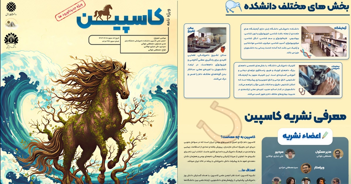 به گزارش حکیم مهر به نقل از دانشجو، در این ویژه نامه دانشکده دامپزشکی دانشگاه زابل، بخش های مختلفی از جمله معرفی امکانات دانشگاه، معرفی اعضای هیئت علمی و همچنین مصاحبه با یکی از دانشجویان دکتری درج شده است.