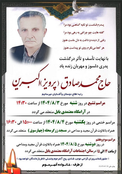 حکیم مهر به نوبه خود، مصیبت وارده را به جناب آقای دکتر اکبرین تسلیت عرض نموده و از خداوند متعال برای آن مرحوم مغفرت و رحمت و برای بازماندگان صبر و اجر مسئلت مینماید.