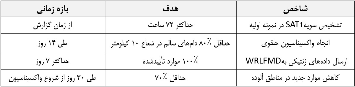 • موارد احتمالی در سامانه WAHIS ثبت شود تا از کمکهای فنی و واکسن بینالمللی استفاده گردد.