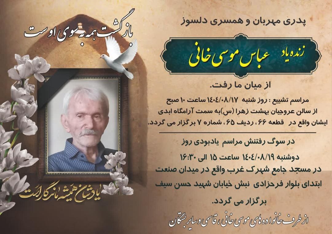 حکیم مهر: با کمال تأثر باخبر شدیم جناب آقای «دکتر فرهاد موسیخانی» رئیس محترم جامعه دامپزشکان ایران در غم از دست دادن پدر خویش به سوگ نشستهاند.