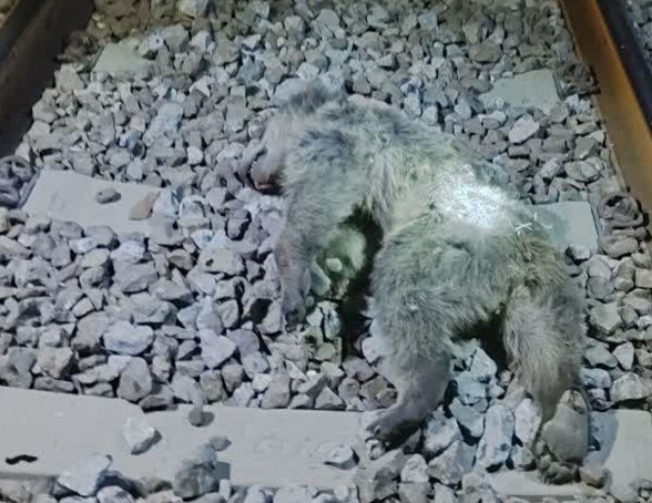 یک خرس قهوه‌ای بر اثر برخورد با قطار در سوادکوه تلف شد