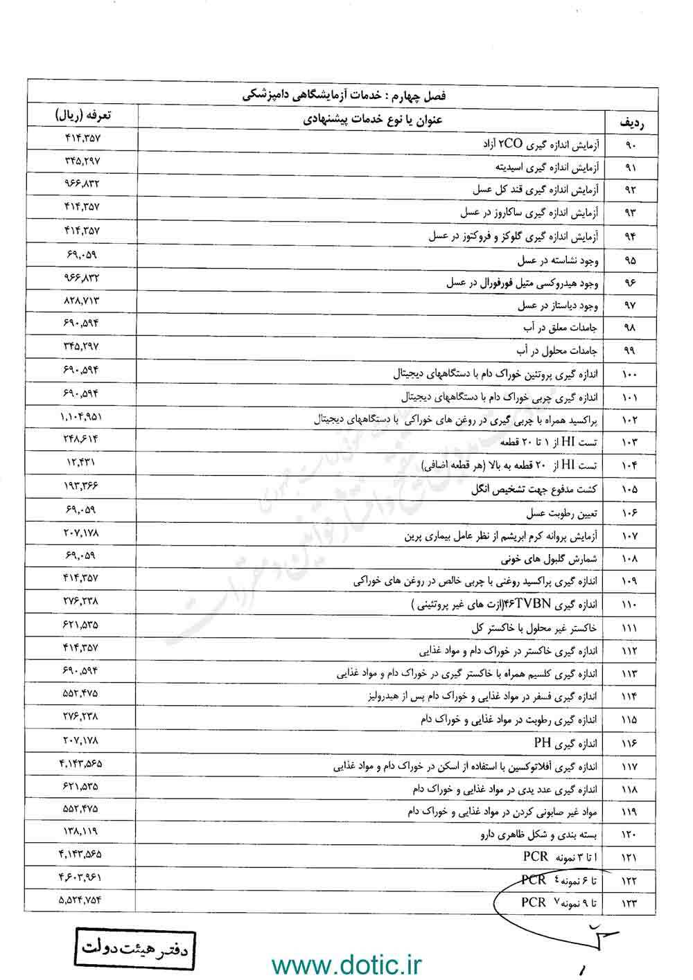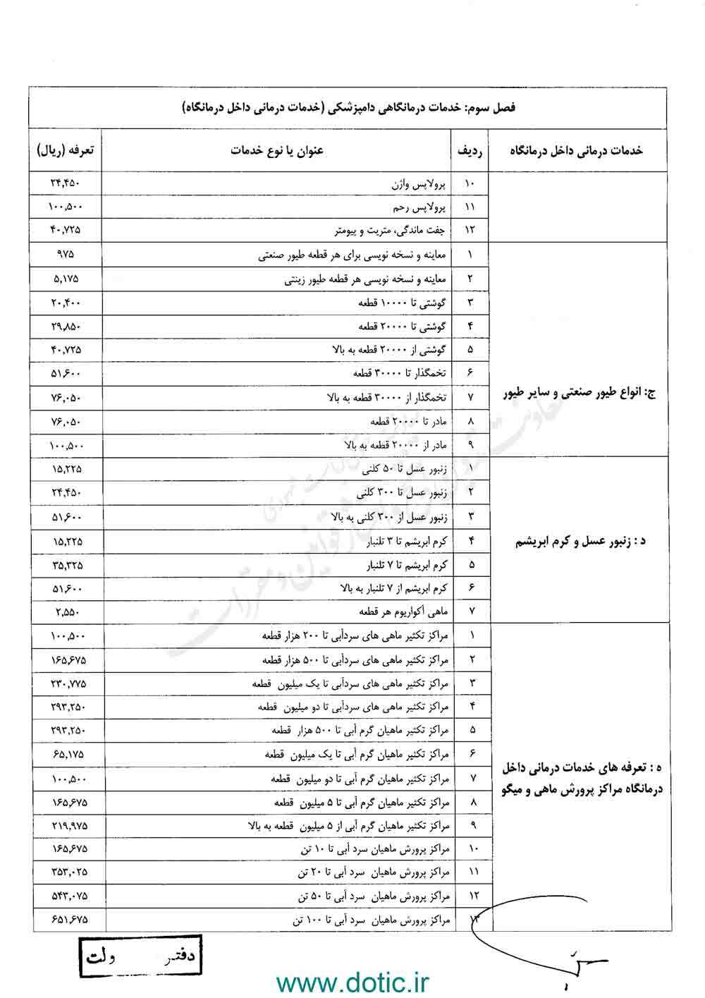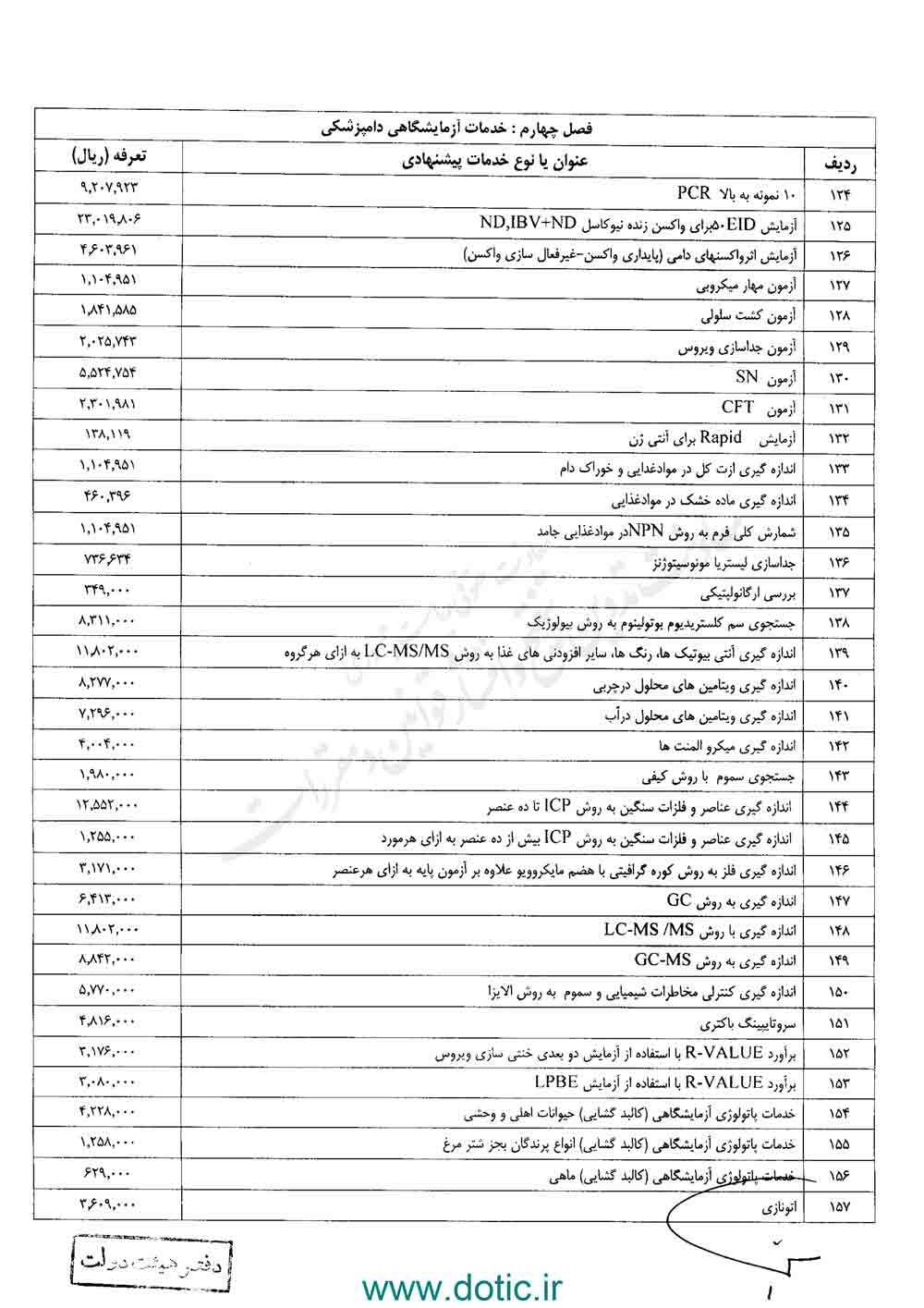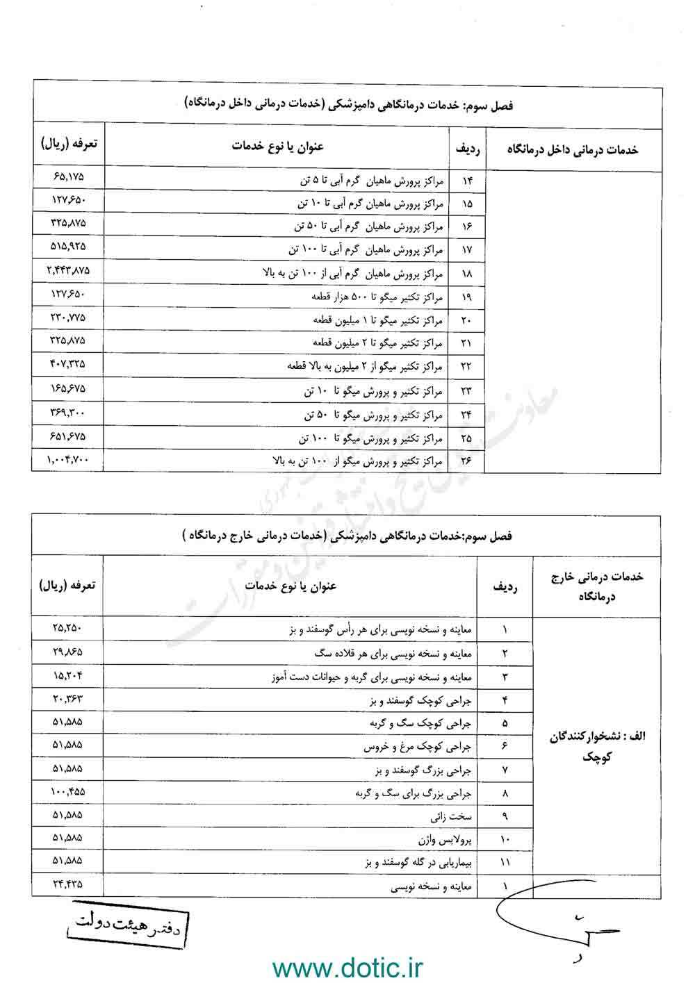 جزئیات تعرفههای جدید خدمات دامپزشکی بخش دولتی به شرح زیر میباشند: