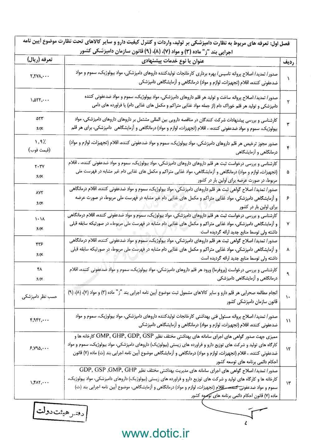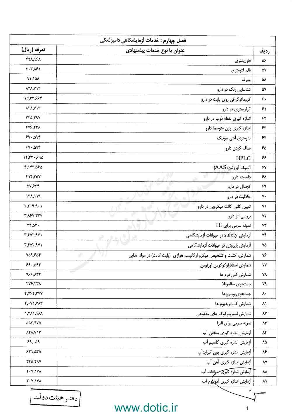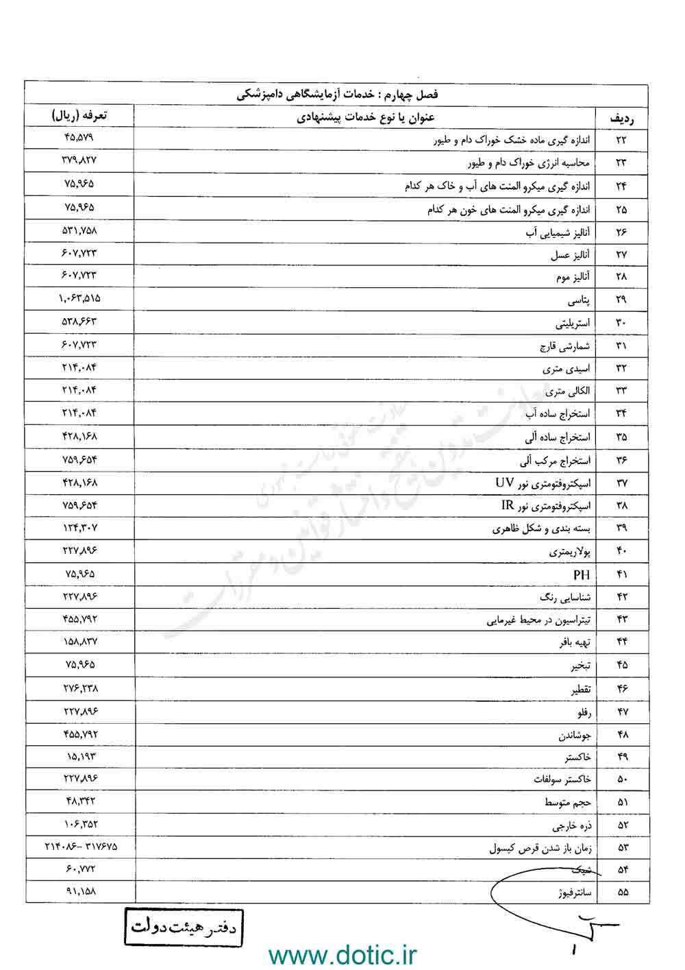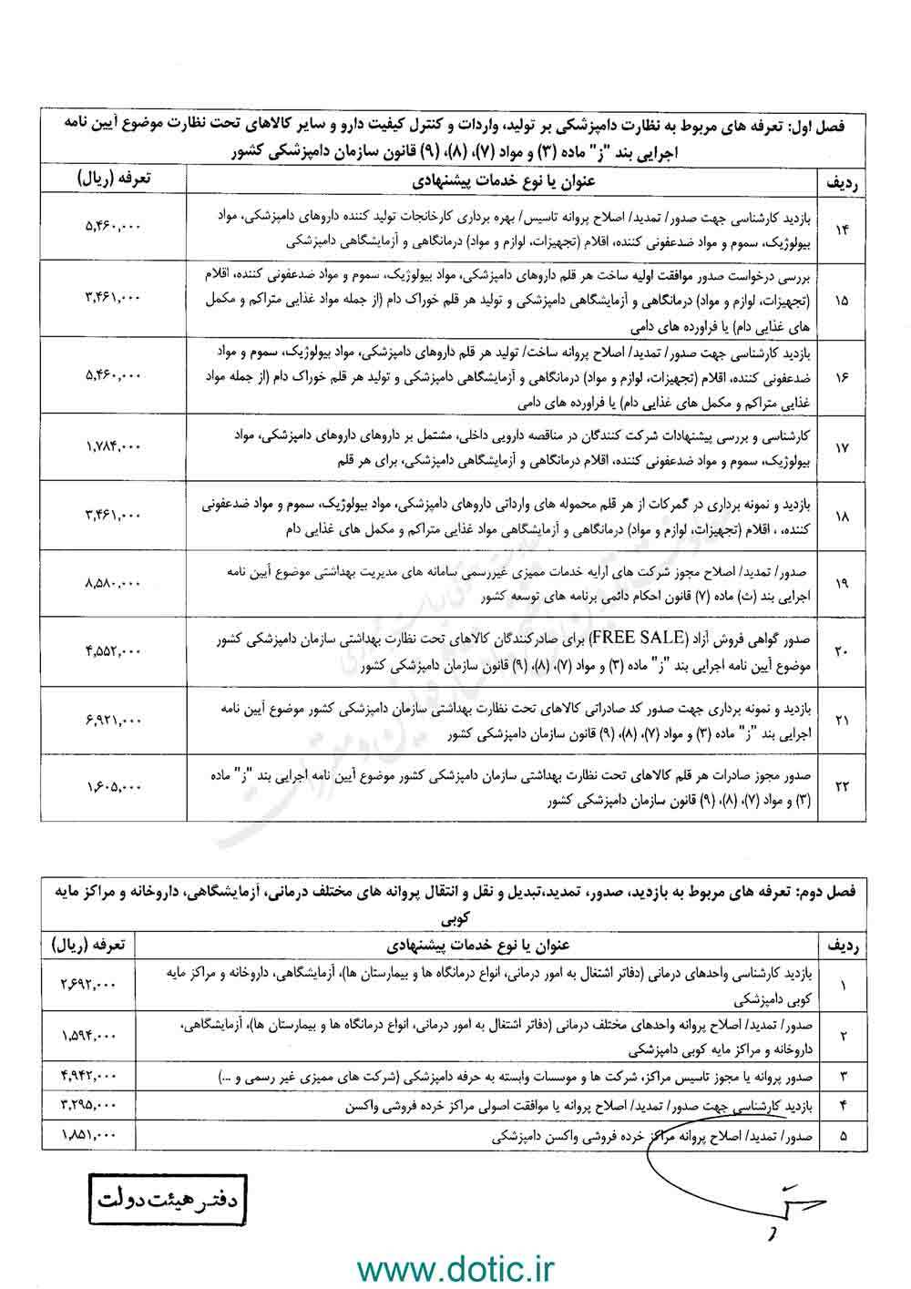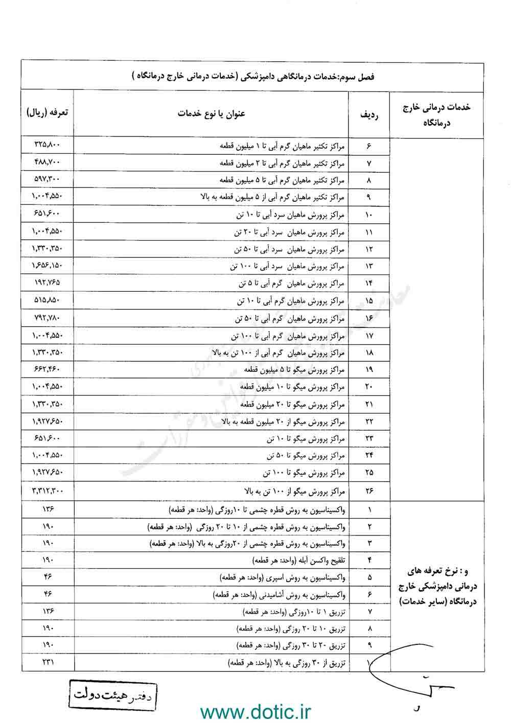 جزئیات تعرفههای جدید خدمات دامپزشکی بخش دولتی به شرح زیر میباشند: