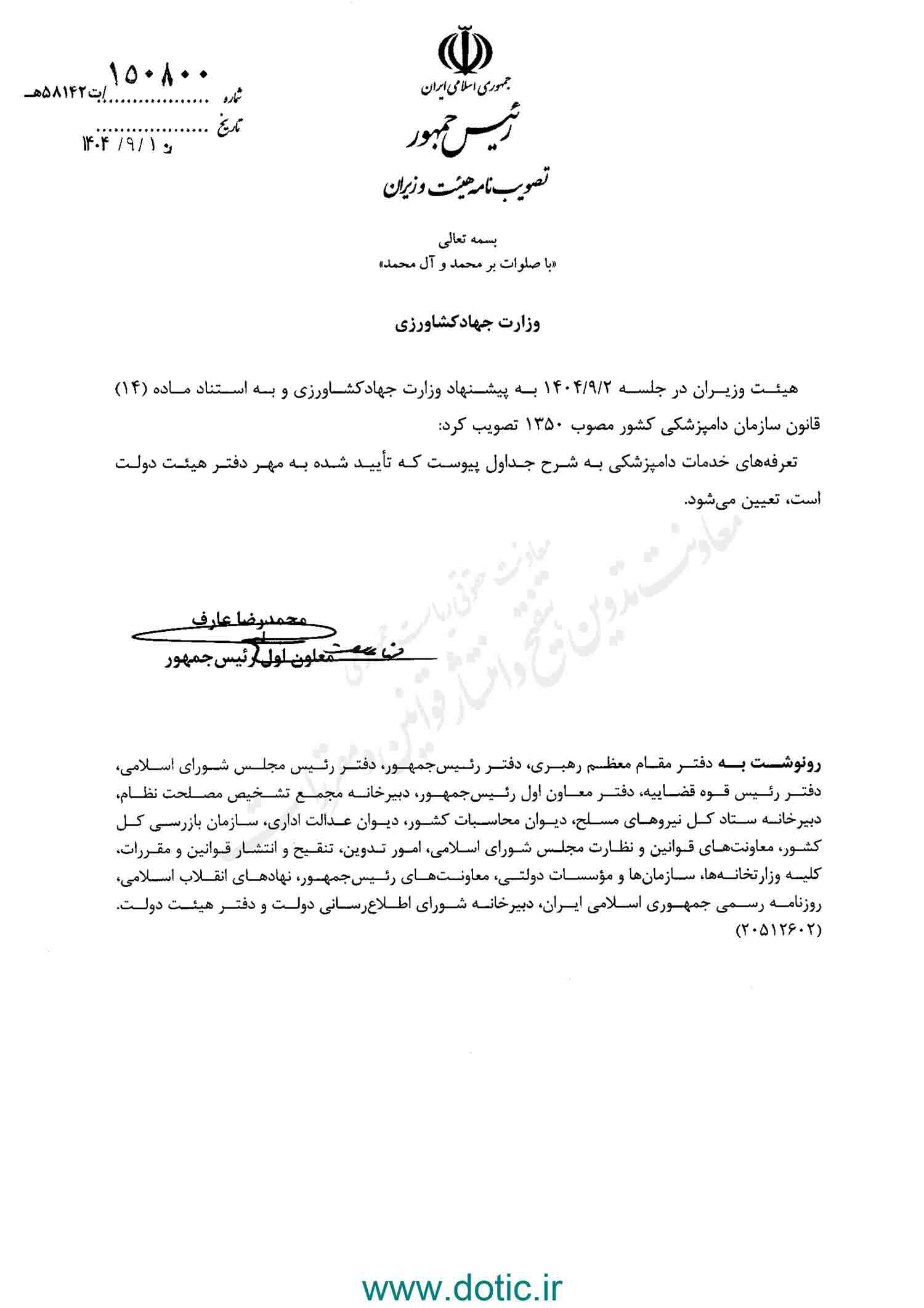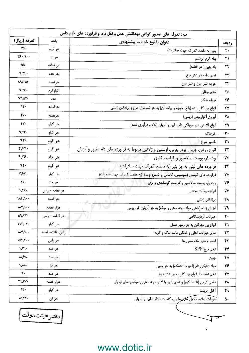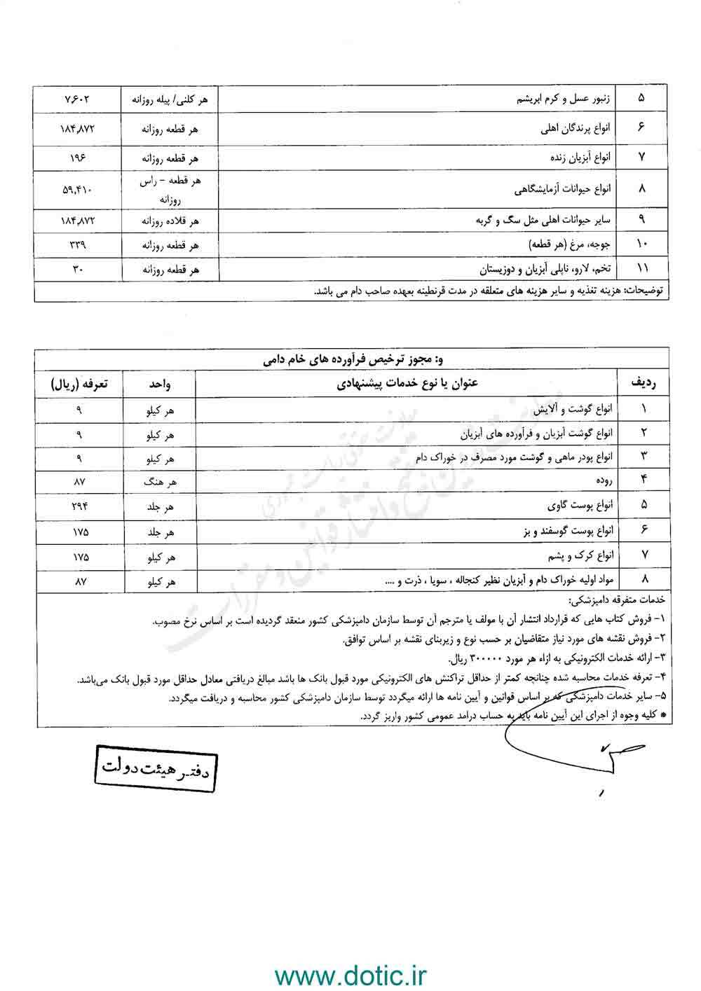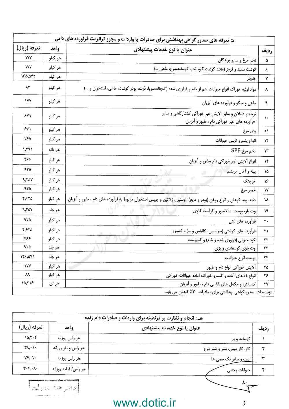 جزئیات تعرفههای جدید خدمات دامپزشکی بخش دولتی به شرح زیر میباشند:
